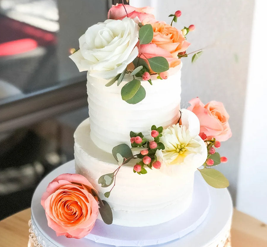 We bake custom wedding cakes to order and would love to be a part of your special day! Our beautiful buttercream cakes come in a variety of styles to suit your taste. Please note that we do not offer fondant cakes.