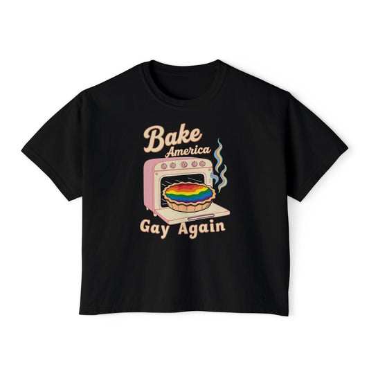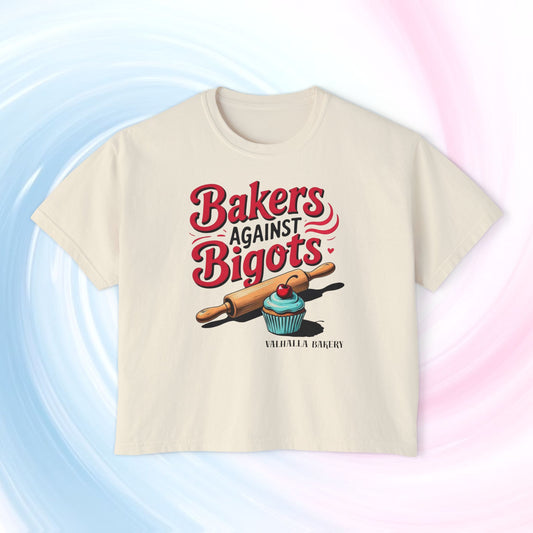 Bakers Against Bigots Women's Boxy Tee, Comfortable Cotton Top, LGBTQ+ Pride Apparel, Baking Lover Gift, Empowering Statement Shirt